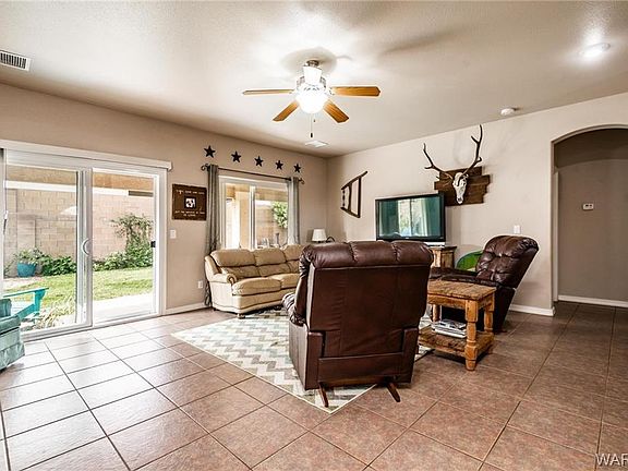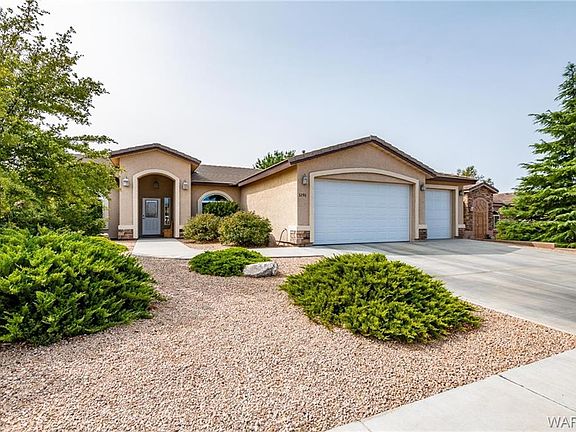 3 bedroom 2 bath home in Hualapai Shadows with 3 car garage! This home offers 1,633 sq ft of living space with a bright open floor plan! Other important features and upgrades include: *Stone accents *Tile roof *Casual dining *Granite counter tops *Stainless steel appliances *Kitchen pantry *Master suite with patio access, walk-in closet, dual sinks, walk-in shower and tub *Two guest bedrooms with full guest bath *Indoor laundry with built in cabinets*Large covered patio *Fully landscaped including grass, rock and matures trees on watering system *Fruit trees include Cherry, Apple and Pomegranate *Block wall fencing. Centrally located close to restaurants and Hualapai Mntn School Dist.