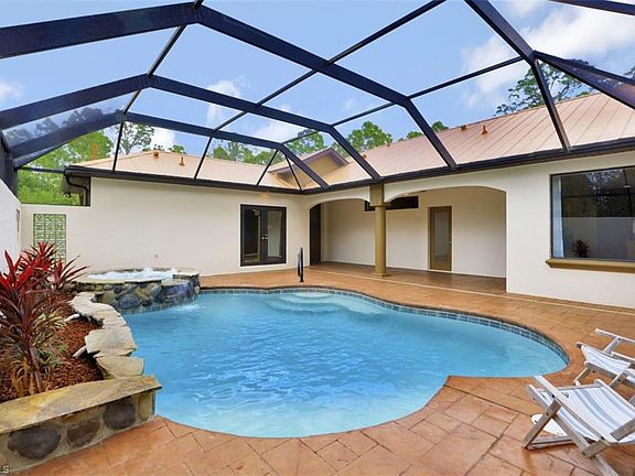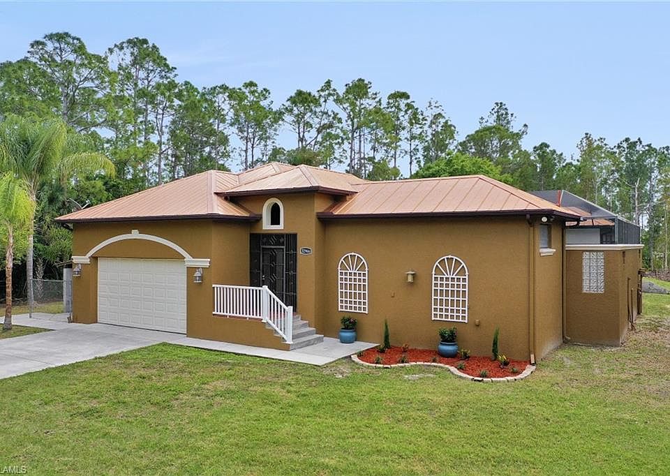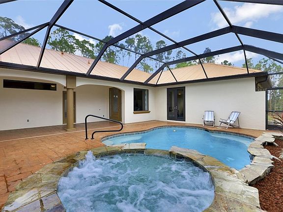 Unique 3/3 courtyard styled pool/spa home on 2.5+ acres. Enjoy privacy, seclusion, and nature while located just minutes from Cape Coral, Fort Myers, or Downtown Punta Gorda. Designer kitchen and bathrooms with solid quartz countertops and high end wooden cabinets. Large flex room with substantial wet bar overlooking prominent wooden deck. Attractive 10ft tray ceilings in living room and flex room. Master suite and In-law suite overlook inviting courtyard. Master bath includes tiled shower, separate tub, dual vanity and his/her walk in closets. In-law suite is an attached but separate living area with full bath, closet, and wet bar / fridge. Plenty of parking available on the generous driveway leading into an expansive 2 car garage complete with 12.5 ft ceilings. Impact windows and doors. Recently updated paint (inside and out), stainless appliances, high efficiency smart pool equipment, brand new well pump, and more. Extremely sturdy custom built construction you will be proud to call home. Move in ready. Schedule your tour today.
