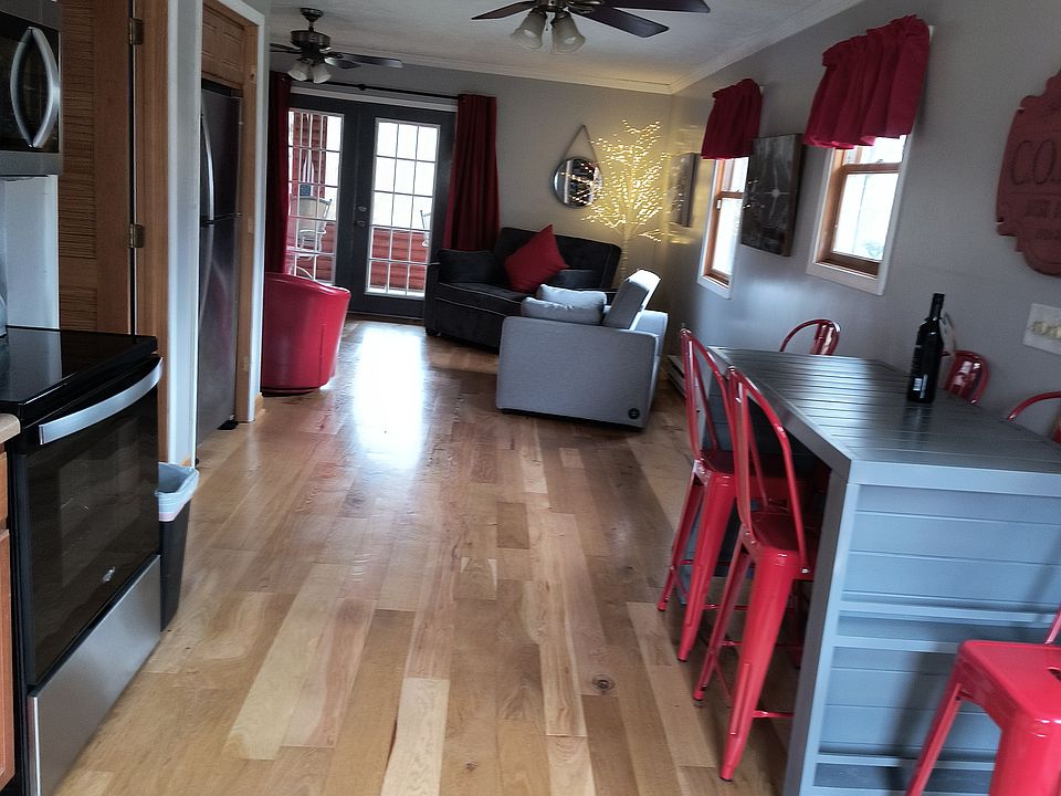 new appliances on the Grand River hardwood flooring downstairs detached garage Geneva schools open floor plan house can be rented furnished or unfurnished leasee pays water electric and trash no smoking no pets