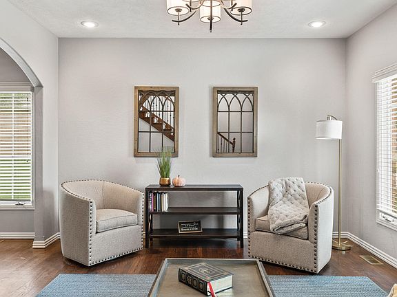 Stunning brick + stone home in the desirable Rivercut Golf Community! This spacious home offers 4 beds, 2.5 baths, 2 living areas, and an upstairs bonus room! Featuring a new roof in 2020, fresh paint, granite counters, hardwood floors, and a park-like backyard. Inside, discover a formal living room + dining room. The kitchen offers white cabinets, stainless appliances, an island with sink and barstool seating, and an attached dining room with vaulted/beamed ceilings. Off the kitchen is a 2nd family room/hearth room with fireplace, built-ins, and a nearby powder room. The primary bedroom has a beautiful attached bathroom with dual sink vanity, soaking tub, walk-in shower, and walk-in closet. Upstairs, find 3 more great-sized bedrooms with vaulted ceilings, a full bathroom, and a large bonus room! Enjoy evenings on the covered back patio overlooking the perfectly manicured fenced-in yard. Rivercut offers an 18-hole championship course located off James River with quick access to Hwy 13. Kickapoo Schools.