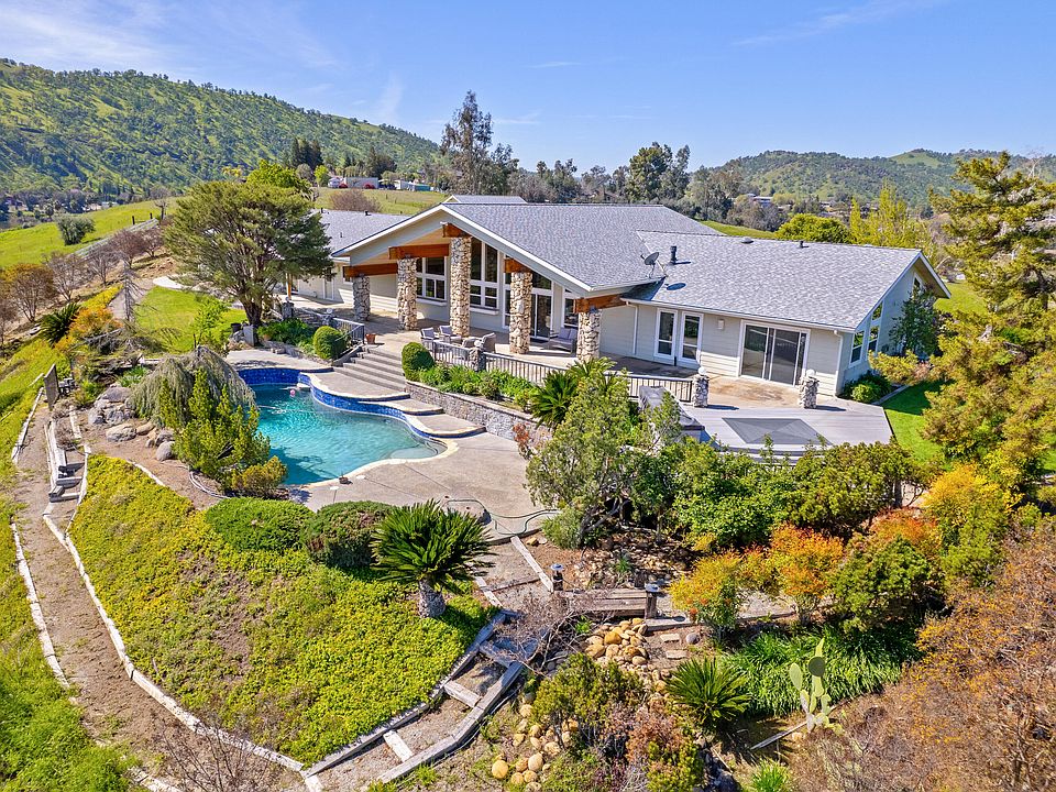 Welcome to this incredible Springville Estate with the Water Trifecta-River, Pond, Pool! At the top of a white fence lined drive is this spectacular home on 2 parcels totaling almost 15 acres. The home has a 360 degree view of Springville, the snow-capped mountains, its' own enormous pond and you can see the Tule River out the kitchen window! The 4085 sq ft home has 4 bedrooms, 4 baths, with 2 complete master suites! The great room has soaring ceilings, built-in cabinetry with fireplace and a fabulous built-in bar. There is a formal dining room, library/game room and an over-sized 3 double-door garage. The kitchen looks out over the pool, pond and river. It has granite counters, a massive granite island, built in sub-zero fridge, and tons of custom cabinetry. The island has a prep sink, and a garbage disposal in it. Both luxurious master suites have sliders out to the back patio. One suite even has a built in coffee bar! There is a detached shop with an upstairs craft room and a custom pool with a fabulous waterfall and surrounded by a breathtaking landscape design! Seriously... Call Me!!!