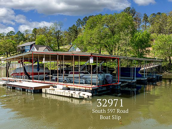 Nestled in the serene Whispering Pines Addition in Woodard Hollow, this charming home offers comfortable country living with community lake access. Enjoy lake activities from the 20'x10' boat slip, also included is a 6,000 lb lift, and wave runner pad. Enjoy lake access in a peaceful country setting surrounded by tall pines. Home features open living, dining & kitchen with wood floors, gas log fireplace, granite counters, island & stainless appliances. Relax in the sunroom with wooded views, or unwind on the screened in deck or open deck grilling area. Primary suite includes a soaking tub, ceramic shower & double vanity. Two guest bedrooms share a full bath. Office off living room. Spacious 2-car garage with workspace located on spacious lanscaped lot. Don't miss this Grand Lake gem!