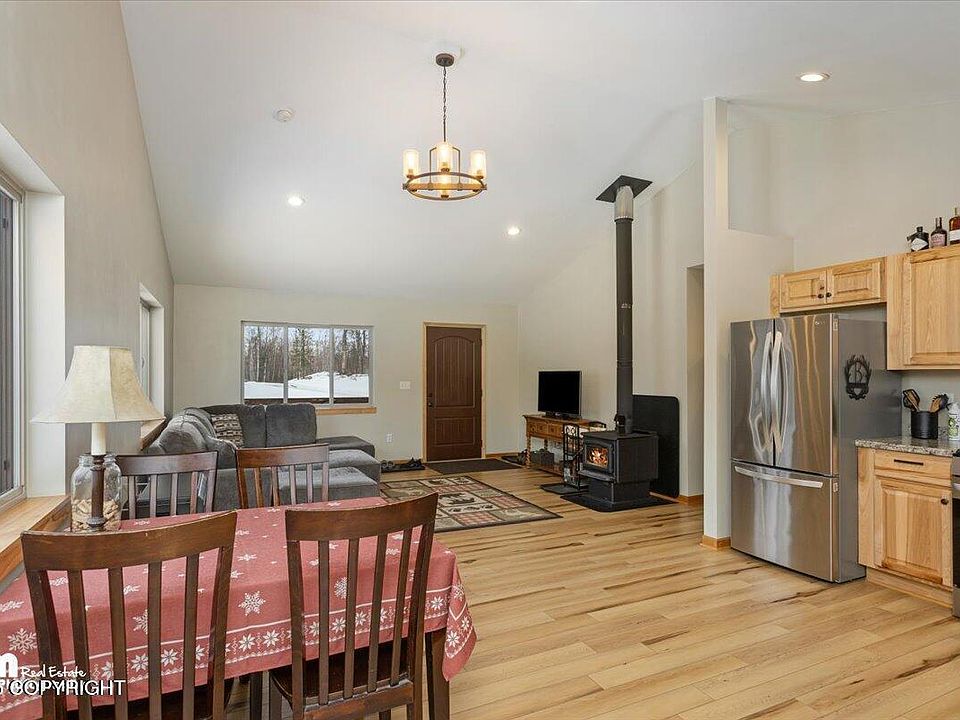 Escape to your own secluded piece of Alaskan paradise at Mt. Brooks Dr., Talkeetna, AK This charming home, nestled on nearly 5 acres, offers the perfect opportunity to immerse yourself in the beauty and tranquility of nature Featuring three bedrooms and one bathroom on 1120 sq..ft. of living space; new woodstove, propane oven range, Toyo Laser 730 oil heater,direct vent can heat up to 2,000 sq.ftThere is a huge detached heated garage/shop of 1500 sq.ft., including a living quarter in the back with a kitchen, wood stove, and shower stall. It could be a nice guest room. Attached is a carport 12' by 12' by 50', ample space for cars or even an RV. The large, covered deck on the north side of the home is 40' by 6'. The house features a thoughtfully designed layout that ensures energy efficiency through top-notch insulation. It provides a comfortable living space with a powerful wood stove that creates a cozy ambiance. As you step inside, you'll see the durable LVP flooring and the stylish kitchen with LG appliances. The property is minutes away from State land with endless opportunities for hunting and fishing,dog mushing, snowmobiling, and other recreational activities. The trailhead to the Talkeetna Mountains is a block away. There is no need to trailer up; you can ride your snowmachine or ATV right out of your driveway. Hundreds of thousands of acres have endless trails to explore,excellent moose and bear hunting. " Not on a through street, end of road privacy. " Conditioned crawl space is 5'8" tall with lights and receptacles for plenty of dry storage. " 12' tall x 12' wide x 50' long carport for RV/Camper, Boat, ATV, Snowmachine, and storage. " Gravel pad with underground power for RV parking or future outbuilding, greenhouse, etc.