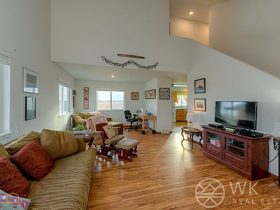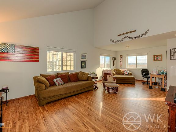 This beautiful 2 story home in west Loveland is waiting for you. Spacious bright kitchen has plenty of counter space, cabinets, and large pantry! Main floor has flexible open floor plan allowing you to choose how to use the space. Great room boasts soaring cathedral ceilings & plenty of light. Easy to maintain laminate throughout main floor. Newer carpet upstairs. Master bedroom has full bath & large closet. Enjoy privacy on the oversized deck w/fully fenced yard, backing to beautiful farm land.