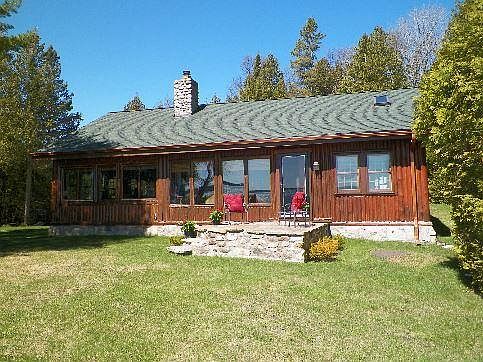 If you are looking for an Up North Year Round Retreat, This is it, 2 bedroom rustic log home plus divided upper loft sleeping quarters,enjoy the open concept design, sit in comfort by the wood burning fireplace in the evening, listen to the water lap up on the sand beach, park your boat at the deep water L shaped 114x33 ft dock and watch the ships pass by your doorstep on 236 ft of the mostly protected waterfront bay, Home was built in the 1940s and tastefully remodeled with additional space in 1995, quality newer appliances included and also internet is available.