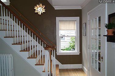 Updated colonial in sought after tri-school neighborhood of Onaway. Updated eat-in kitchen with all appliances. Open living room and dining room including sunroom. Four bedrooms on second floor. Lower level rec room. Fantastic third floor suite bedroom, full bath, half bath and laundry. Hardwood floors throughout and some newer windows. Open floor plan and todays decor and paint. Nice yard with deck. Two car garage. Exterior painted in 2010. Basement has been waterproofed and has transferrable warranty. This house is ready to move into!