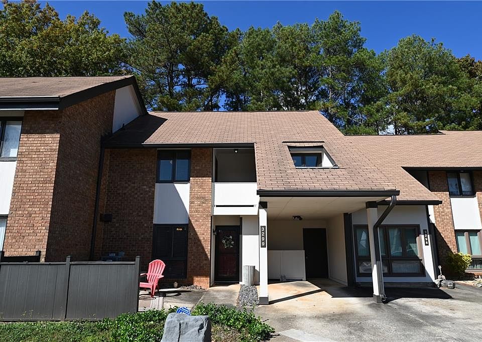 This spacious townhome is centrally located in Brookhaven with easy access to I85. A beautiful community that offers swim and tennis. You can relax in the large vaulted great room with a brick fireplace. Lot's of room to entertain in the spacious dining room. Roomy galley kitchen. New hardwood floors. The 2nd level is accessed by a spiral staircase. There you will find 3 spacious bedrooms all with great closet space. There's an awesome patio with a private brick wall enclosure, and 2 of the bedrooms have access to a front balcony. Carport with storage and room for parking in the driveway. Mechanical systems are newer, the roof is scheduled to be replaced by the HOA.
