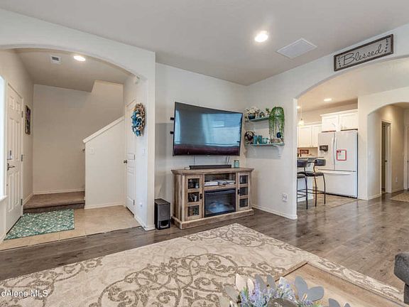 Well-maintained Post Falls home nestled in the heart of the Tullamore neighborhood. This superb home offers 4 BR/2.5 BA and 1670 sq ft. Natural light fills the open concept living room, kitchen and dining area. Fourth bedroom could also be used as a home office.Features also include large primary bedroom with dual closets and jetted tub, fenced yard with outdoor shed for storage, alley-accessed 2 car garage, Ecobee smart thermostat and large walk-in pantry. Prime location within minutes of parks, shopping,restaurants, hiking, and all that North Idaho has to offer. Turn-key and ready to move in!
