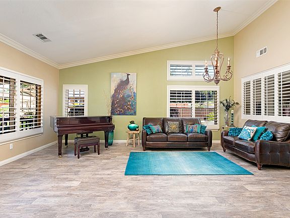 Gorgeous upgraded estate home located in a peaceful neighborhood on .7 acre useable lot with detached pool house , custom pool & spa complete with waterslide & grotto, palapa, built in bbq, custom bar & outdoor tv. Main home first level has oversized master bedroom, spacious walk-in closet & private en-suite, secondary bedroom, full bath, office off entry, vaulted ceilings in living room, chef's kitchen open to family room with stone fireplace & dining nook. Upstairs are 2 additional bedrooms & full bath