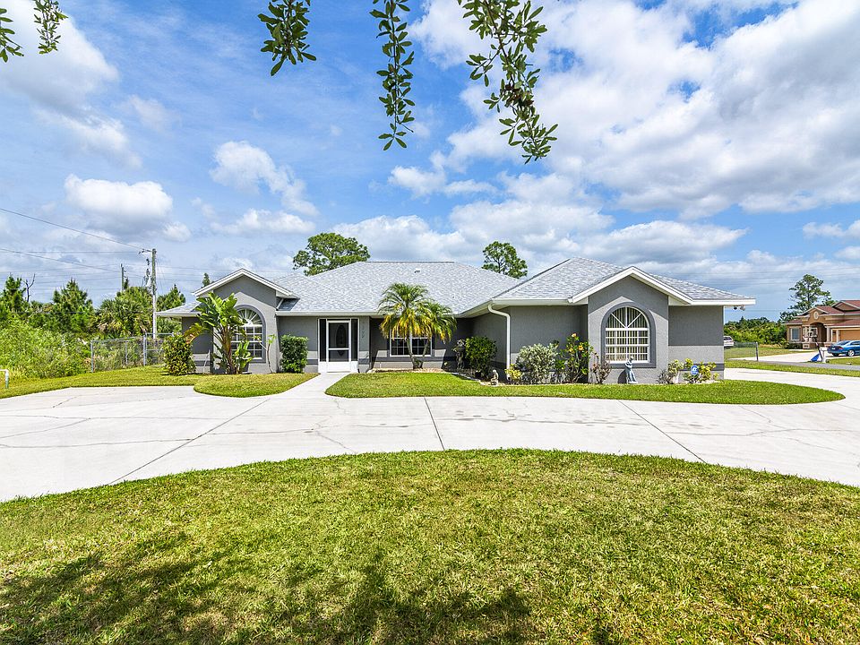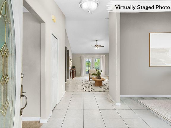 Brand new roof! Discover freedom W/ NO HOA limits on a .74-acre haven w/ circular driveway, where parking your trailer, RV, or boat isn't just possible; it's encouraged. This custom home offers 4bdrms/2.5 baths (garage w/ 0.5 bath) & large flex room, perfect for study or craft room beneath soaring ceilings, tile floors & carpet in all bedrooms. The kitchen opens to the nook & family room & offers corian counters, breakfast bar, wood cabinets & SS appliances. - perfect for gathering. Unwind in the sizable primary bdrm w/ french doors, walk-in closet, a tub & separate shower. The guest bdrms offer comfort while their bath offers access to the outside. French doors lead to the large screened porch, a perfect retreat for watching the kids or simply soaking in the serene ambiance.The house is generator-ready, the garage offers a half bathroom & this property may be subdivided