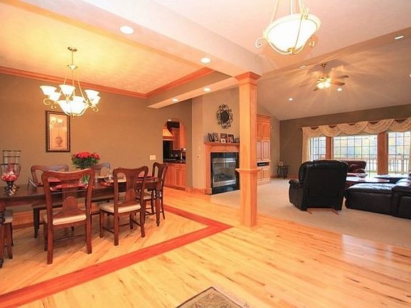 Privately situated on a knoll, at the end of a dead end road and surrounded by 60 wooded acres, this 4200 sq foot, 4 bedroom, 5 Bath home is as beautiful inside as its surroundings. Custom features incl granite counter tops, red birch cabinetry, hickory floors, master suite, walkout family rm with wet bar and entertainment center, & LL bedroom is a private guest suite with its own full bath. Also includes is a 36 by 50 heated shop, extensive landscaping, & awesome hunting!