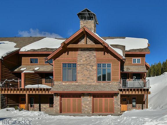 Incredible opportunity to own a thoughtfully upgraded, mountain modern, Alpenglow Condominium within close proximity to Big Sky Resort. This end unit condo offers a spacious floor plan with 4 bedrooms, 3.5 bathrooms, a sophisticated aesthetic and an unobstructed view to Lone Mountain. High-quality finishes and significant owner upgrades make this unit one of a kind. The master suite has an upgraded bath as does the upstairs guest bath which has two vanity sinks and a linen closet. The main floor pantry has a second refrigerator and can be used as an owner lock-off. Multiple customized owner lock-off closets were pre executed for a better rental experience. Vaulted ceilings, a fully equipped gourmet kitchen and a security system. Front deck with hot tub allows for ease of outdoor enjoyment. Wonderful enhancements to the deep garage, boot dryers, workbench/storage. 2021-03-02