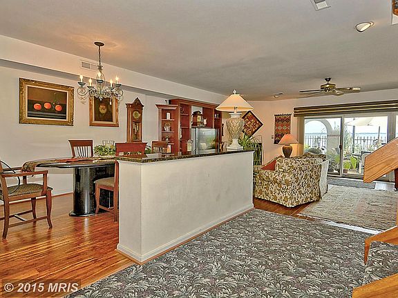 Gorgeous waterfront home is 1 of the 5 largest town homes in Queens Landing. Perfect kitchen is upgraded & expanded.Family room w/fp & sliders to large waterside patio w/outdoor kitchen. Main level w/hd flrs. Huge master w/sweeping views & private waterside deck.Seller offering $10k decorator allowance & seller will pay assessments at settlement. Comm amenities:pool, club house,marina,tennis etc