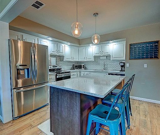 Welcome home to this top notch Split/L foyer near schools, shopping and most anything you need. This home is tucked into a 1 block street with low traffic and is finished to perfection. Newly painted exterior starts your tour with oversized 2 car garage and extra parking with beautiful fenced backyard. Once inside you will find updated LVT flooring upstairs with open concept kitchen with beautiful subway tile and solid surface counteracts, updated appliances and underground sink. Beautiful large windows with plant ledge in the livingroom and dining room round out the space. Entering the lower level there is newer carpet in both the extra bedroom and rec room to make a plush entertaining space with 2nd bath that needs nothing but a new owner. Stop by soon and take a look for yourself!