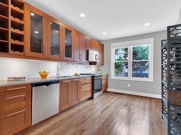 No. 33 47th Street, a glowing three-story Colonial style single-family residence built atop The Palisades, is superlatively located only half a block off of Boulevard East, which promises both a breezy commute and panoramic storybook views of one of the most iconic vistas in the world: New York City as seen from elevated above the Hudson River. Situated on an impressive 28'x100' lot, the home offers three levels of thoughtfully laid out living space, 5 Bedrooms, 2.5 Bathrooms, a wondrous array of closets and storage solutions throughout, as well as a full Basement with Laundry Room and a manicured back yard which seamlessly transitions from tiled Patio to lush Lawn. The entire home was meticulously reimagined from the ground up to exacting standards in 2016 and modernized with two-zone Central AC and Heat, GAF Timberline Shingle Roof with plywood roof sheeting, double-hung TrustGuard windows, energy-efficient exterior insulation, recessed lighting and a host of key plumbing and mechanical upgrades. The first floor offers generously proportioned, open living space that uniquely allows for uncompromised, easy living day-to-day and effortless entertaining of large parties of family and friends. Red Oak hardwood floors unite the Sitting Room, Living Room, Dining Room and Kitchen in crisp harmony, and lead directly to the Patio and Lawn in the back yard. A Powder Room and Mud Room provide added convenience. The home's original banister winds up the stairs to the second floor, which is highlighted by a Master Bedroom with a wall-full of custom-built closets, original pressed-tin ceiling and a bay window with views of New York City, a Bathroom with dual-vanity, tile floors and walk-in shower, and two additional South-facing Bedrooms. The third floor is comprised of a full Bathroom with dual-vanity and tub, two Bedrooms on opposite ends (one with a bay window with views of New York City, one with a tremendous storage area), and a remarkable Office / Walk-In Closet with skylight in the middle. The full Basement is a paradise of boundless storage opportunity as well as home to a Laundry Room with a side-by-side Washer/Dryer and a sink. No. 33 47th Street is located just half a block from the NJ Transit bus stop on Boulevard East (47/48th St) which features three separate bus lines that offer a constant flow of direct service to New York City. It is also easily walkable to the both the NY Waterways Ferry and HBLR Light Rail at Port Imperial, the HBLR Light Rail at Bergenline Avenue, Louisa Park, Old Glory Park and Hamilton Park (all of which overlook the Hudson River and the entirety of New York City) on Boulevard East, as well as an impressive range of restaurants and shops on Park Avenue, Hudson Avenue and Boulevard East.