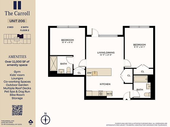Welcome to The Carroll! Designer 2 Bed 2 Bath residence Contact The Carroll EXR representative for more information about our other 2 beds many which feature island kitchens, Terraces and Balconies The Carroll combines timeless architectural elegance with modern luxury living in the heart of Carroll Gardens. Each residence features thoughtfully designed spaces with premium finishes, floor-to-ceiling windows, and sophisticated details that reflect the neighborhood's historic charm while delivering contemporary comfort. Amenities include: Outdoor Garden Multiple Roof Tops with sweeping views Pet Spa Gym Work Stations Kids Room Multiple Lounges
