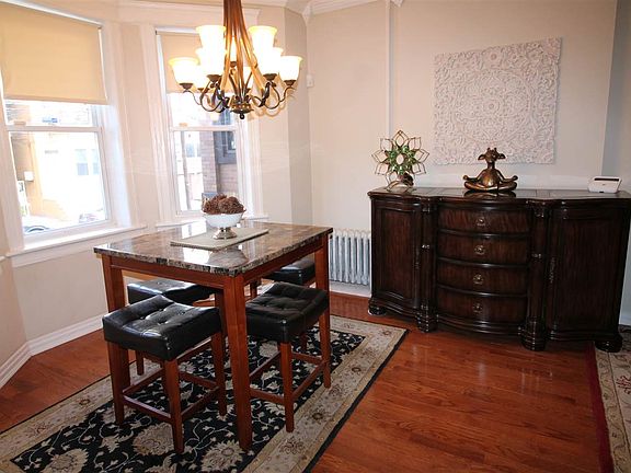 Can't find what you want in Weehawken? Consider West New York, same easy 30 minute commute. Solid Brick 2+Family detached townhouse, circa 1910, 1/2 block to Blvd East on a lovely tree-lined street. 1 car garage and 1 car parking outside. Fenced in private yard for family and pets. 1st fl and basement renovated, 2 bedrooms and 1 bath on first floor with an open floor plan for the living/dining area. It has wood floors throughout, high ceilings, bay windows, plus an access to a full finished basement with a living room, kitchenette ( no stove), laundry, and 2 full bathrooms for long stay guests. The second floor is updated with an eat in kitchen, living room, 3 bedrooms, 1.5 baths and laundry. It's vacant, you can pick your own tenants or live upstairs and rent out the first floor and basement. The bus to NYC is at the corner. Walk to schools, park, stores etc.