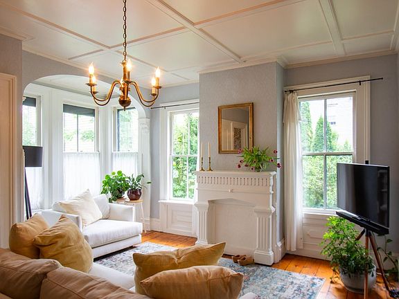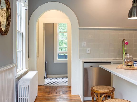 Eden an 1836 Colonial in Kinderhook. Privately set back with a hidden glen of a yard planted with specimen trees and lovely gardens. Freshly painted exterior and interior. Covered rocking porch extra deep for summer nights. Large entrance doors to welcome you to a lovely staircase and banister. Double parlors with high ceilings and wonderful detail. Wood burning fireplace. Wood floors throughout. Butler's pantry with original built ins and wainscoting. Perfect for coffee bar, wine bar or your plant collection. New kitchen with handmade Dutch tiles, white cabinetry and great working island. Pantry with new penny tile. Four bedrooms upstairs. Large primary with upstairs balcony perfect for morning coffee. Office and dressing room in primary. Lovely gardens. Post and beam barn. Backs up to Columbia Cty Historical Society for walking trails and picnics. The perfect paradise close to all amenities. Historic and done with a fine attention to detail.