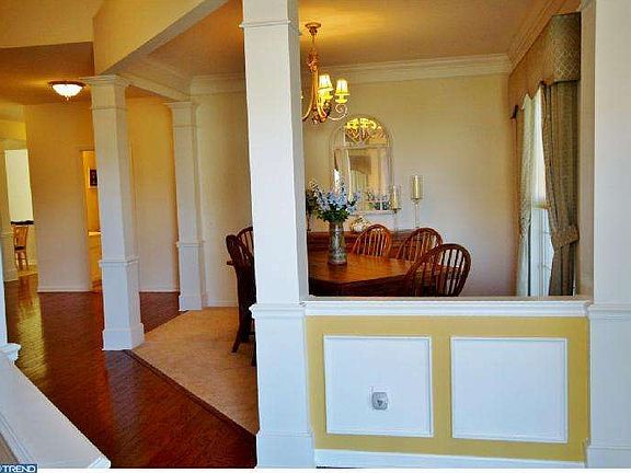 Backing to woods this lovely Navesink model with stone front&open front porch. Entry foyer (hardwood flrs) that is open to the formal dining room. Cozy living rm w/hardwood floors. The spacious gourmet kitchen w/white 42" cabinets, white appliances including a double wall oven, breakfast bar&separate eating area. Fm rm -atrium door to rear yard & gas log fireplace. 1st flr master suite -stall shower, walk in closet, 2nd level Loft, 3rd bdrm and full bath plus walk in storage attic.