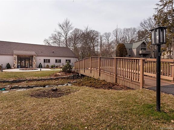 Its hard to list all the indoor and outdoor features of this stunning home. The house has a natural light that welcomes you home. The moment you enter the home, you are greeted by new hardwood floors, dramatic vaulted ceilings, a warm and inviting wood-burning fireplace with sliders enticing you to enjoy the sunny gated decks. The den is the perfect place for your office or perhaps invite friends to stay over for a bit. The upstairs features a spacious master bedroom with a full bath, a huge walk-in closet, and new carpeting. A large lower level offers a great place for all your storage needs and includes a new hot water heater The unit comes with a detached garage. Move into this comfortable unit and enjoy the convenience of from the south community room, pool and clubhouse along with all the incomparable amenities Oronoque Village affords its residents including cable and internet usage. Please note that the district tax is paid quarterly.