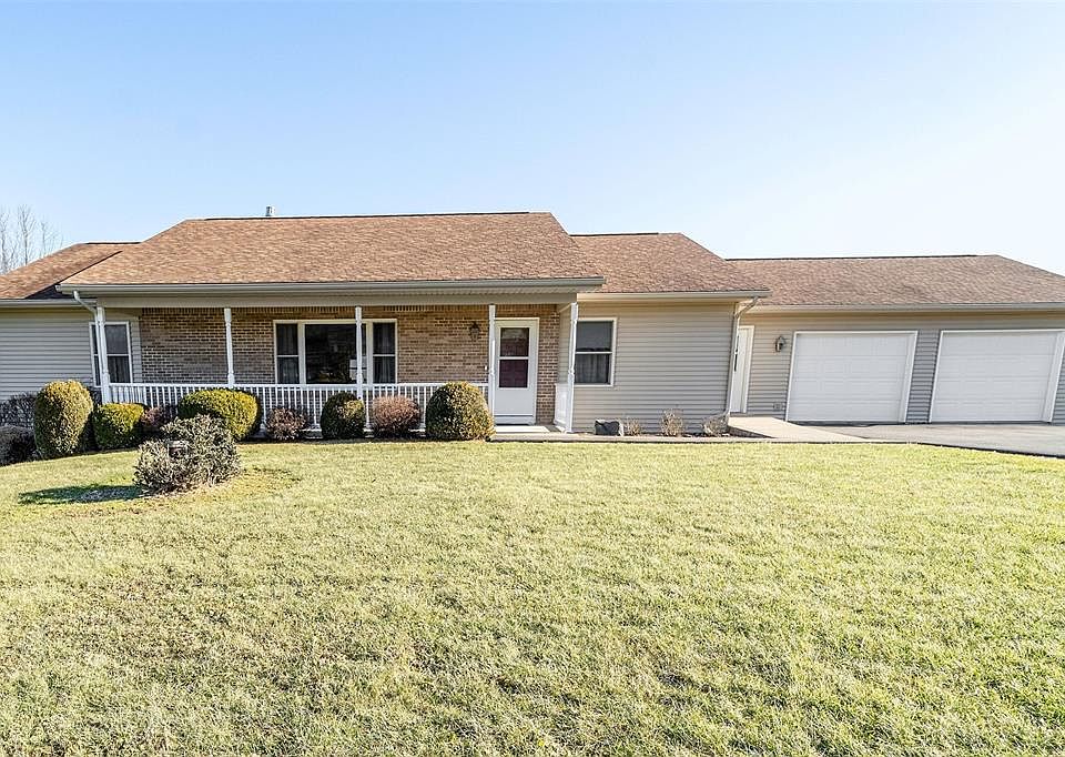 True single level living! Built in 2003 and situated on over 2 acres with great views. Three bedrooms and 2 full bathrooms. Open concept kitchen, dining area and living room with gas fireplace. Large walk-out lower level ready to be finished. Very well kept and easy maintenance. First floor laundry, attached garage, walk-in shower. Town has verbally agreed to reduce taxes to approximately $7,500. Will have written conformation in the next few weeks