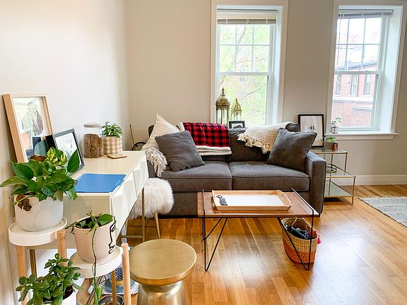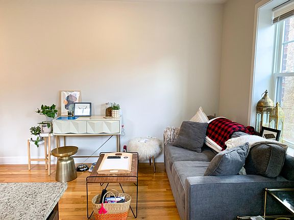 Gorgeous, sunny 2-bedroom available 6/1/21. Third floor location at the rear of the building offers peace and solitude. Window exposure on three sides of the building allows abundant natural light. Central air conditioning. High ceilings. Laundry IN UNIT! Tile bath with tub and Kohler fixtures. Fully appointed kitchen with dishwasher, disposal and gas cooking. Equal-size bedrooms with decent closet space in each. Located in a fully renovated building with keyless fob entry, large central staircase, fully sprinklered with central fire alarm, common roof deck with lounge furniture, and common recycling. Managed by local, attentive management. Get in touch for showing availability! 12-month lease available June 1st. Last & security due at signing; first month's rent due at move-in. Utilities (gas heat & hot water, electric AC) paid by tenant. Landlord provides potable water and sewer. No broker fee. Cats negotiable; no dogs. No smoking.