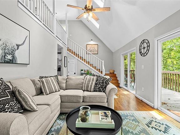 Seasonal mountain viewsHardwood floorsOpen loftRemodeled kitchenStainless steel appliancesPrivate wooded lotWhite shaker cabinets