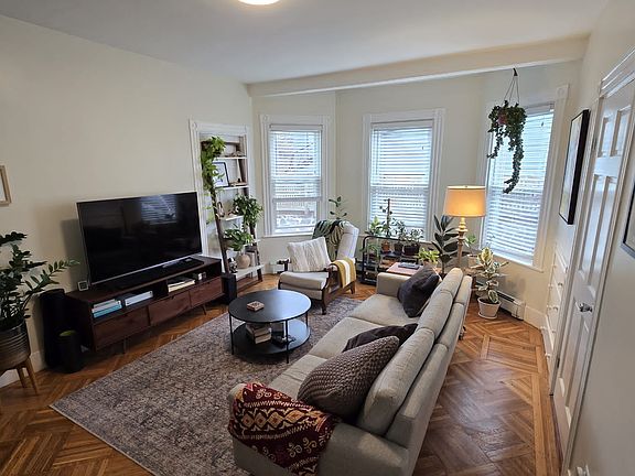 If you are looking to rent a 2-bedroom apartment in the beautiful Peter's Hill area, a 6-minute walk from the Roslindale Village T (Needham CR to Back Bay or South Station) and bus stops in Roslindale Square (to Forest Hills and all other directions) and a 4-minute walk from the Arboretum, come and take a look at the first floor unit. We have been living in the sunny-side property for a few years now and so far we love it. There is a yearly block party in our street where you can meet the neighbors, share some good food and hang out with everyone. Halloween trick or treating is also lively and highly awaited every year. The one-way street provides makes living here nice and quiet. On-street parking is free and plentiful. Access to highway 95 is only 7 minutes away. Foodies will love living here as amazing choices are available at walking distance: Greek cheese, olives and fish at Roslindale Fish Market, cappuccino at Square Root, soft serve ice cream at Green T, freshly baked bread at Fornax, ethnic foods at Village Market and the other stores of Rozzie Village, and then a plethora of highly reviewed restaurants, breweries and holes in the wall. Whole Foods, Wegman's and Costco are a short drive away. The southern entrance of the Arboretum and Peter's Hill where you can enjoy the view of the Boston skyline are just a stone-throw away. Fallon Field is a few minutes walk away, while many other parks and ponds are a short drive away. The 1st floor unit offers: - High-efficiency gas heat and hot water system with Nest thermostat - Two good-sized bedrooms with built-in closets; additional closet space in the living room - Updated Kitchen (stainless-steel appliances, including new gas range; disposal) with large pantry - Washer and Dryer in the unit - Updated Bathroom with shower space - Original hardwood floors throughout and ceramic tiles in the kitchen only We are asking $2750 monthly for this 1st floor apartment. Utilities are not included. Showings will be based on a first come, first serve basis. We require: - Good credit and no past delinquent payments. Gross household income preferably 3x the rent - First and last month for moving in. Thank you and we are looking forward to showing you our property. Non-Negotiable. First and Last Month Rent to move in. Owner covers realtor fee if coming through this listing. Cats are ok.
