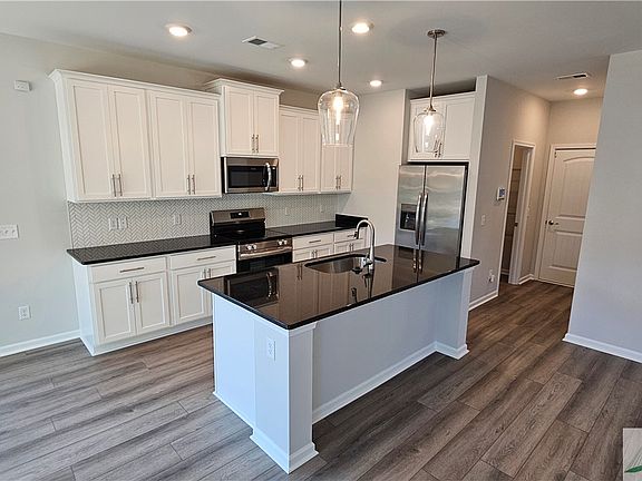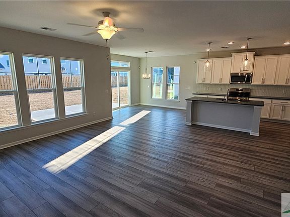 Savannah's most trusted local builder is proud to offer the Crestview plan. This 4BR, 2.5BA home of 2005sqft of LA has an open concept main floor. The kitchen w/granite counters, undermount sink, tile backsplash, stainless appliance including a side by side frig, and 42" upper cabinets, is finished with beautiful island pendant lights. It is open to the dining room & the great room. Stair treads to upstairs are stained wood & handrail. All BRs are upstairs. The primary suite includes a bath w/5ft walk in shower & double vanities. All baths have quartz countertops & framed mirrors. Gorgeous click plank flooring is in main living areas, baths, and laundry. BRs are carpeted. Home has a level 3 ADT security system. The exterior has a 18x12 patio, full sod, landscape beds, & irrigation. Pictures, features, & selections shown are for illustration purposes & may vary for the actual home built. All Builder incentives applied. Completion date is estimated to be January/February 2024.