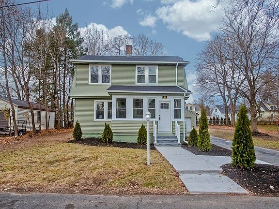Wonderfully remodeled Cozy 4 bed 1.5 bath colonial in East Longmeadow. This remodel is stunning in design and taste! This home features a heated front porch with polished espresso hardwood floors, gorgeous brand new windows and lovely entrance doors. Ten foot Ceilings on 1st Floor & gorgeous espresso hardwood floors, Beautiful living room with fireplace & bookshelf with storage & a wrap around open dining area & brand new spacious kitchen with tons of cabinets, gleaming black granite, lovely pendant lighting, all new stainless Steele appliances & a half bath on first floor! Beautiful foyer with gorgeous stair case leading to 2nd floor & a Lovely hallway leading to all bedrooms that have polished espresso hardwood floors with closets & a beautiful remodeled bathroom with tile shower walls, vinyl flooring, lovely lighting & new fixtures. Elegant concrete sidewalk, Arborvitaes add to huge .27 acre yard!! Use Springfield Mass to locate on GPS