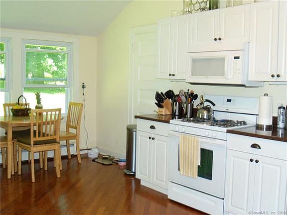 In the Ridgefield Village, walk to historic Main Street. Entire first floor of this two-family home. 1400 square feet, plus front porch. Approx. 700 s.f. antique shed [for common storage only, not for cars].. Eat-in kitchen, recently updated with hardwood flooring, back-splash and granite counters and new white/wood cabinets, and newer appliances. Pantry and 4 other closets.. One large main-bedroom, one smaller bedroom, Nice sized Dining room and Living room. Separate laundry room with washer/dryer/. Large front porch. Full basement for storage. Owner is a contractor and will fix, repair, paint any areas needing attention, as soon as the tenant moves out. Available first week of March.. Tenant will be responsible for credit report, renters insurance, electricity, fuel oil, propane [cooking only], phone, cable, and plowing [only if needed]..... landlord provides for trash pick-up, lawn-care, maintenance, house and property insurance, and sewer & water charges.. Satisfactory credit report and references required