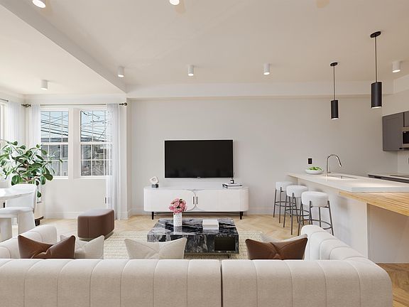 Move right in to this stunning 3-bedroom, 2.5-bathroom residence with 1,600 square feet of interior space and a private backyard. On the main level, you'll find a well-designed floor plan featuring a living, dining, kitchen, three bedrooms, and two full bathrooms. The open concept living and dining areas create a seamless flow, perfect for entertaining and everyday living. The kitchen is equipped with quartz countertops and stainless appliances, providing a sleek and stylish space for culinary enthusiasts. Additionally, the main level grants direct access to a private backyard, offering a serene outdoor retreat. The lower level of the home features a spacious 400 sq.ft. flex space which can be used as a screening room, home gym, additional bedroom or more! A half bathroom on this floor provides additional convenience and comfort. The residence also boasts other luxury features such as herringbone oak flooring, radiant floors in the bathrooms, LED backlit mirrors, and high efficiency heat pump and AC. This home offers the best of urban living with its vibrant community and easy access to a wide range of amenities, including dining, shopping, and entertainment options. Enjoy the charm and convenience of this neighborhood, while still being within reach of everything Jersey City has to offer. Bayview Ave. is also conveniently located short direct drive to liberty state park and 78 West. Unit is virtually staged.