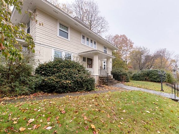 Welcome to this West side All American 4 Square Traditional Colonial.Enter into this grand open foyer with Craftsman influences .Features - Spacious front to back freshly painted living room with exposed ceiling beams, built in book-cases, window seat and fireplace w/pellet stove insert.French doors lead out to a 8x20 ft.side porch w/ tile floor, heated & ready for your finishing touches.Large Dining Rm. fresh paint with high ceiling and magnificent plastered embellished scroll work, crown moldings, and a beautiful stained glass window.The 1911 craftsman staircase with stain-glass window leads you up to the 2nd floor. Open upstairs hall welcomes you to 4 large bedrooms one being the primary.This room also has a walk-in closet and annex rm. closed off with French doors with built ins.3rd.flr. finished walk-up skylight Eat -in kitchen with center island, butlers pantry that opens to the dining rm. a breakfast room with a new double door opening to a private deck and yard.1 car det.gar.