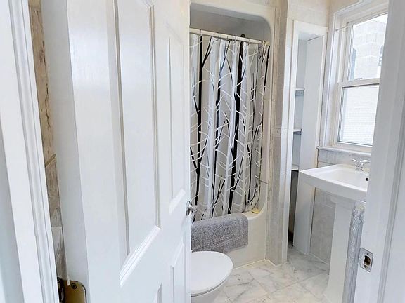Bellingham Square area-6 rooms Top Floor unit freshly painted Benjamin Moore gray. Well maintained owner occupied home. Heat included in rent! . 2 bedrooms -One smaller will hold twin bed other larger good for queen bed with attached additional room great for generous walk in closet or could be great office space (not xtra bedroom) ,Hardwood floors throughout. Modern Kitchen and Bath with italian marble tile floor and walls, dishwasher, disposal and gas stove with dining area. Lead Certificate in hand sorry no washer and dryer on site/ laundry mat is nearby. Move in today