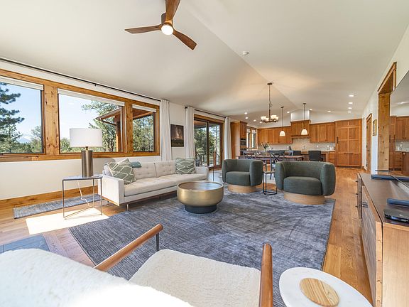 Surrounded by mature pines with stunning views of the Sneffels Mountain Range, arrive to your all one-level thoughtfully designed home with an open floor plan beautifully appointed with the finest finishes and amenities including white Oak wood floors, Miele kitchen appliances and Kohler plumbing fixtures. Two generous en suite bedrooms and a 'flex' room that comfortably offers you a third bedroom are joined by a spacious open living, dining and kitchen area highlighted by views of the 4.28 acre outdoor landscape and picturesque rocky mountain peaks. The convenience of this finely cultivated home is highly desirable: minutes to the Divide Golf Club; 15 minutes to the town of Ridgway; 20 minutes to Montrose and Ouray; and 45 minutes to the world-class Telluride resort.