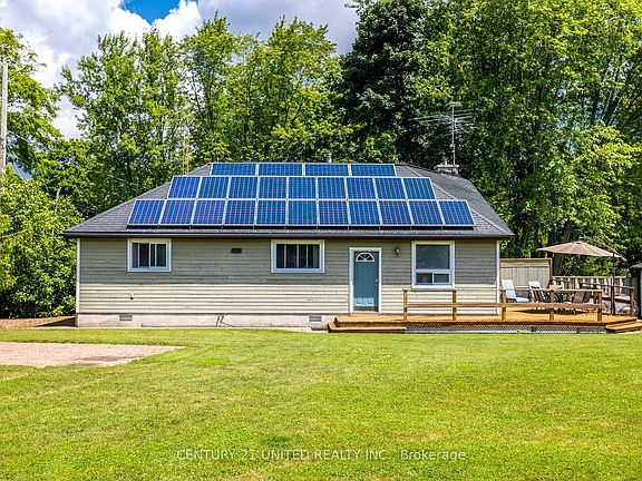 Unique opportunity to own one of the most desirable properties in Thurstonia! This 1135 sq ft bungalow is situated on a private lot at the top of the hill on Birchcliff Ave. Custom built, 1 owner, 4 season home or cottage with sunken living room, vaulted ceilings, and custom granite fireplace surround with airtight woodstove. Open concept layout with large eat-in kitchen including breakfast bar with walnut bar top. 3 bedrooms, 4 pc bath & main floor laundry. Ultimate privacy in this peaceful setting backing onto farm fields & offering a wrap around deck, shed/bunkie with electrical & a level lot (.27 of an acre)! Room for a garage & a pool if you so desired! Owned solar panels generate significant income annually with transferable contract. This property is the neighbourhood's best keep secret & comes with the exclusive use of owned dock & leased waterfront space # 06-185 located at the end of Hollyville Blvd.