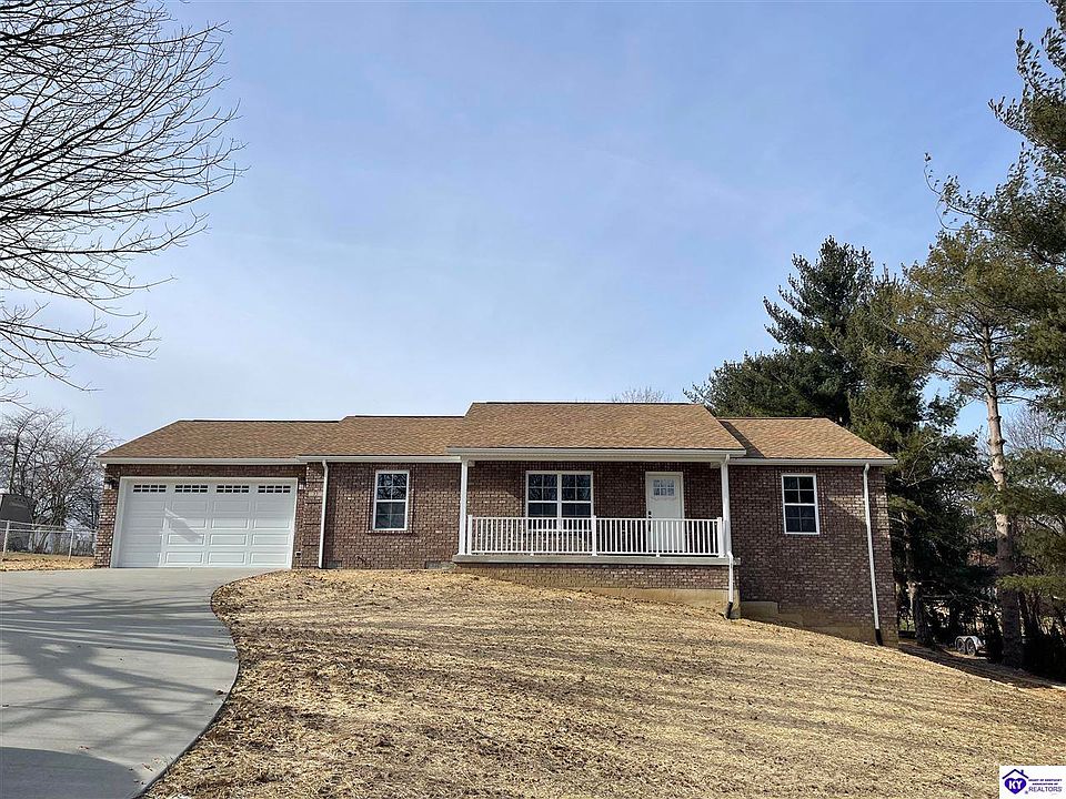 NEW CONSTRUCTION 1500 sq ft with 3 bedrooms, 2 full baths, 2-car garage with remote control and keypad, brick ranch-style home built in established neighborhood. This beautiful home has split bedroom floor plan, large Great Room with cathedral ceiling with ceiling fan and easy-to-maintain waterproof for 24 hr barnwood laminate flooring with manufacturer life-time residential warranty. Kitchen has white cabinets and pretty green island with pendant lighting all with soft-close drawers and doors, quartz countertops, pantry and stainless appliances. White subway tile backsplash was recently added and looks great with the cabinets and quartz! Primary bedroom has a lighted ceiling fan, razor lights and large walk-in closet. Primary bath has quartz countertop. Extra features include a large 50-gal water heater, sprayed foam insulation in crawlspace for heat and air efficiency, covered front porch and a 10x12' deck overlooking a large backyard. Close to shopping, restaurants, walking paths, Freeman Lake and nature trails. Easy access to most major highways and less than fifteen minutes to Fort Knox or Blue Oval SK in the new Glendale Mega-site.