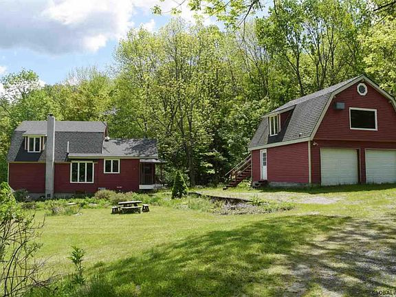 Spectacular, completely private 40 ac property perfect for a year-round home, weekend retreat, family reunion, COVID-19 retreat w/ total of 3,047 SF of living space! 5 ac pond for kayaking & canoeing, waterfront gazebo, dock & swim raft. 40 acres w/ trails for hiking or cross country skiing, hunting or logging. Property borders Grafton Lakes State Park. Just 20-30 minutes to Albany, VT or MA & 3 hrs to NYC. Main house w/ 2,259 SF, 3 floors of living space with 3 BR & 3 full BA, bright & open floor plan overlooks pond; post & beam construction, updated kitchen, pellet stove in LR & gas stove in walk-out lower level ~family rm or bedroom 3~also w/ full bath, full windows and sliding door. 2 car detached over-sized garage w/ 2nd floor studio apartment~full BA and kitchen area w/ 576 SF.