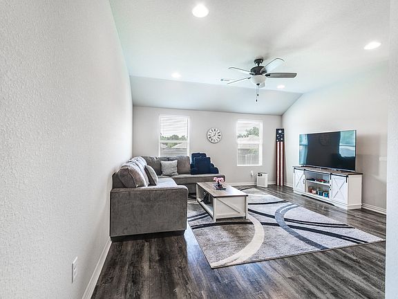Super cute and well maitained home conveniently located! There's even a community fishing pond with walking track, a frisbee park, and playground within walking distance from the subdivision. This lovely home features an open concept with luxury vinyl plank floors throughout and carpet in the bedrooms. The cook in the house will love the spacious kitchen with stainless steel appliances including a new diswasher. Living area includes tall ceilings and recessed lighting. The large fenced in back yard features a 14x7 covered patio making it perfect for summer cook outs! This house also has added features including being wired for CAT6 and security sytem cameras that convey (rack in laundry room conveys but the 2 pieces of security equipment on it do not convey). Washer & Dryer stay too! Call to see this one today!