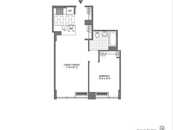 Fantastic studio apartment featuring high ceilings, a separate kitchen, a spacious living/dining area, king-size bedroom, ample closet space, and northeastern exposure with views of Downtown Brooklyn.