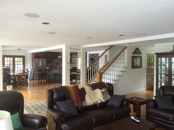 YOU WILL NOT FIND A BETTER PIECE OF PROPERTY ON THIS FANTASTIC LAKE PRIVATE HOUSE ON 3 ACRE GATED LOT, TUCKED AWAY LAKE FRONT, WITH GREAT VIEWS , BOAT DOCK. VERY CLEAN CLEAR DEEP WATER LAKE, Big Island Pond. Move-in Ready, fully renovated, hardwood floors throughout, beautiful granite countertop. Desirable school district for all ages. PRIVACY, ABUTS CONSERVATION FOREST, WITH ACCESS TO MILES OF WALKING TRAILS. GREAT CROSSCOUNTRY SKIING, SNOW MOBILING, BIKE PATHS TRAILS. NO NEED TO DRIVE ANYWHERE. GREAT ICE FISHING IN THE WINTER Custom Built, Single Family, 3 bd., 2.5 bth., attached 2 car garage, with a Bonus building including an additional Large detached 2 car Garage, above offering 700 sf. With 2 additional full bathrooms. House sits on 140 ft lakefront of 550 acre 60 ft deep lake. 2,000 KW Whole house Generator Whole house vacuum system 2 GAS FIRED PLACES BONUS BUILDING Can be used for WORK SHOP, OFFICE, Art Studio OR INLAW APARTMENT.