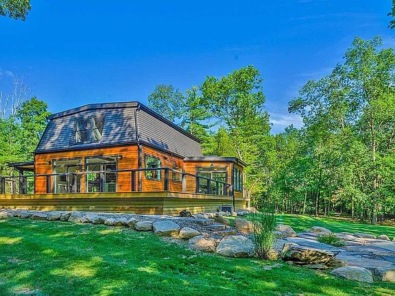 Hudson valley getaway home!! This beautiful new construction home located on a quiet dead end road with peace and quiet abound. Situated on a 2.60 acre parcel that has a deep woods feel yet close to, farm-to-table restaurants, the Ashokan Reservoir, shopping, antiquing, farmers markets, the rail trail, hiking, biking and skiing. Custom built from the ground up offering 2,450+ square feet of energy efficiency throughout, superior craftsmanship, the latest technology, and the finest quality materials. Entry to the home is throughout a large covered carport offering craftsman's touch. Once inside you step into a warm and open floor-plan with 9 foot ceilings then walls of windows bringing the wonderful private outdoor sights in. The first floor is also graced with gleaming Maple hard wood floors, 200 year old barn beams and a large Chef's kitchen appointed with matching Thermadore appliances, Quartz counters, a six burner stove and chimney hood. On chilly days, enjoy the warmth and ambiance of the floor to ceiling gas fireplace with metal and rough cut wood accents. From the living room walk out to a light filled 4 season room lined with windows giving the feeling of an outside enclosed porch. Elevate to the second floor from the custom steel staircase with Spalted Maple 4 treads sure to be a conversation piece. The master suite offers its own private balcony, sliding barn door to a gracious walk-in closet and a custom tiled bath with marble vanity. Two additional bedrooms on this floor all with great light, convenience of upstairs laundry room and another full bath with skylight. Energy efficient features include 850 series Pella Windows and doors, high efficiency speed gas furnace, high efficiency AC and spray foam insulation throughout. The exterior of the home is graced with a stone wall that marks property boundaries, multiple decks (+/- 1,500 sqft), a fire pit, 2 large circular mountain stone patios with stone benches and waterfall feature.