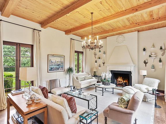 Spectacular outdoor oasis with pool, stone terraces, courtyard with fireplace and fountain complements majestic four-bedroom Mediterranean style home on .9 manicured acre in the Belle Haven peninsula. Beautifully renovated and expanded interior integrates original 1926 architectural details with modern amenities. Showcases flexible floor plan with graceful archways, outdoor access from main rooms, elegant living room with high ceilings, impressive fireplace and bas relief murals; chef's eat-in kitchen; family room with built-in's, pool access; conservatory, stunning second floor master suite with fireplace, fabulous walk-in closets and deluxe bath. With breezeway to detached garage.