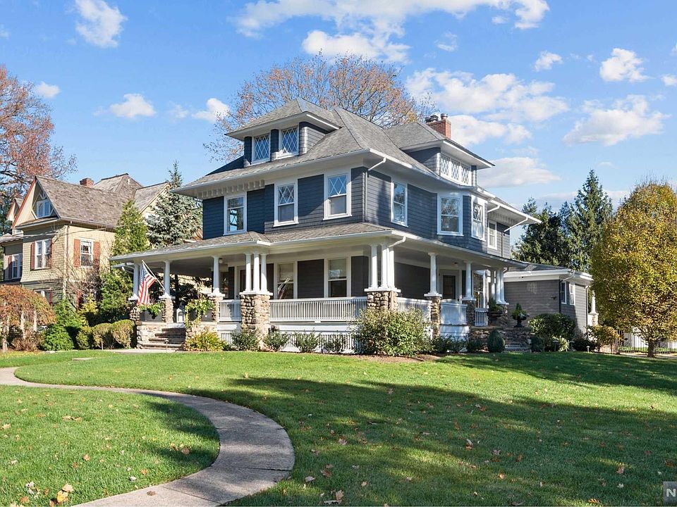 Located on one of Ridgewood's most desirable streets, this home is a special offering for today's modern family, with incredible scale, design, and sanctuary. Fully renovated with 4 floors of living space, the home is the perfect blend of modern and historical. The heart of the home is the kitchen with open floor plan to vaulted family room, overlooking the picturesque backyard with Marbelite pool/spa. Kitchen and bathrooms finished by high-profile New Jersey Interior designer, using the highest end materials and finishes. The primary suite can't be missed with high-style sophistication and eye catching original exposed brick wall. Basement is new with designated home office, living space, and gym. Sitting on 1/2 acre, the wrap around porch is welcoming and overlooks the professionally landscaped grounds. Backyard is perfect for entertaining, private, with built-in gas grill, pool house, kitchen/wet bar and half bath.