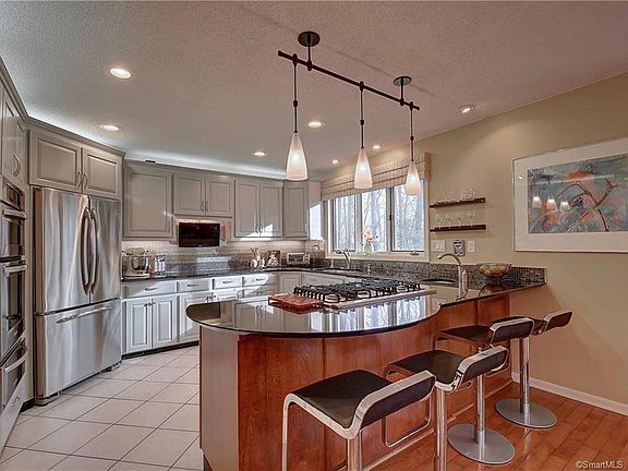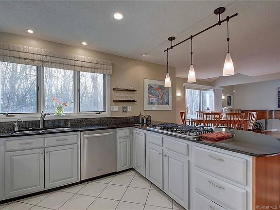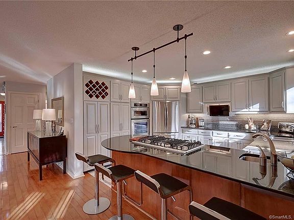 Beautiful contemporary custom home designed for todays casual lifestyle. First-floor open floorplan, lots of natural light and wraparound deck lend this home to entertaining delight. An updated kitchen with Absolute Black granite with knife edge & custom gray cabinetry encompass the new stainless steel appliances - a Bosch Propane Range; A Wall Oven with Built-in Microwave; GE French Door Refrigerator& Kitchen Aid Warming Drawer; Double Sink & Service Sink; Built-In Wine Rack... Truly Fantastic! First-floor open concept hosts hardwood throughout, a formal living room with a see-through fireplace to the family room, with a slider to the wrap around deck. The dining area can hold a table with seating for over 12 people, also with a slider to the wrap around deck. Rounding out the first floor is a bedroom, full bath, laundry area & mud room. The second floor is the master bedroom - with fireplace, balcony & large integrated bookcase allowing for an office, sitting room or workout area. Two Walk-In Closets & Full Bath complete the level. In the finished walkout lower level, you will find a cedar closet, half bath, and 2 spacious bedrooms - one with a slider to the rear yard. The oversized 880 SF multi-level 3 car garage has plenty of upper-level storage (255 SF)... room for all the toys! Landscape, Home & Security Lighting, Patio, 6" Insulated Walls, and oversized wraparound deck make this a showstopper. Convenient to RT 2 - Close to Colchester and E. Hampton.