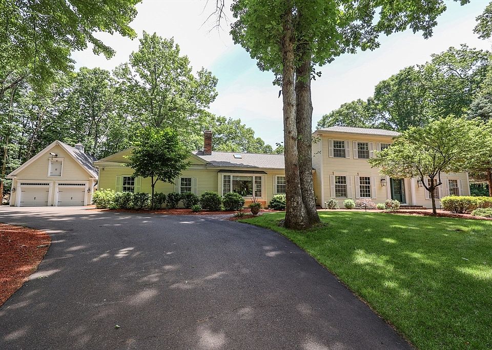 Welcome to 33 Buttonwood Road, a stunning home in a prime area. The estate-like entry features a picturesque pond with a fountain and a meticulously landscaped 2.5-acre lot, offering privacy and tranquility.This 4,398 sq. ft. home includes 4 bedrooms, 3.5 bathrooms, a grand foyer, living and dining areas with gas fireplaces, a family room with large windows, an office, and a first-floor laundry room. The primary suite has a walk-in closet and updated bath with dual vanities and a tile shower. Three additional bedrooms offer ample closet space.The four-season sunroom leads to a backyard oasis with a salted, heated inground pool, patio, outdoor kitchen island, and brick pizza oven. The finished lower level includes a family/game room with a full bath and storage. Features include hardwood floors, crown molding, an indoor/outdoor music system, and an oversized Carriage House with endless possibilities.