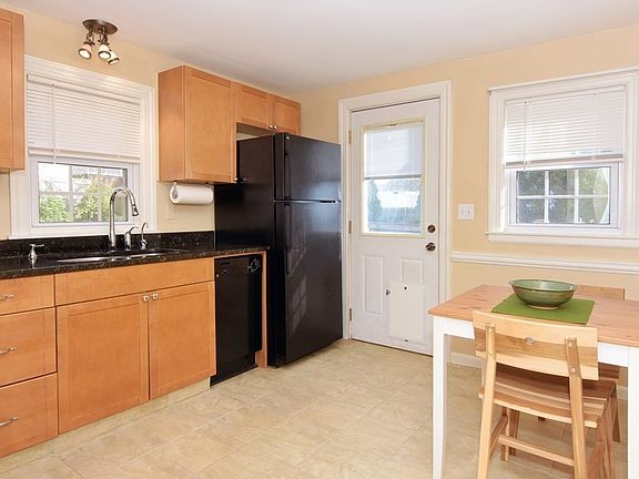 Traditional New England Cape with nice style and efficiency upgrades. Enjoy the ambiance of the brick front wood fireplace in the living room. Deep-toned granite counters set a rich theme for the updated kitchen. Solid hardwood floors grace the living room and two first floor bedrooms. The second floor hosts a large bedroom and a loft area suitable for quiet reading or storage. A Nest thermostat and a heat pump furnace installed in 2022 provide energy efficient warmth throughout the home. Stay cool in the summer with central A/C. Other updates include the renovated bath and replacement windows. The fenced back yard is comfortably shaded and and has a variety of interesting plantings. A board and batten storage shed provides weather protection for tools, bikes and lawn furniture. Easy access to major routes and more. This home is move-in ready and available now!