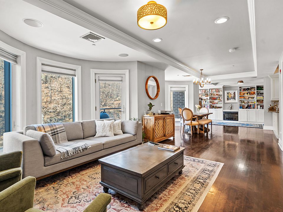 Experience unparalleled elegance in this sophisticated 3-bed + den, 3-bath duplex at the prestigious Henley on Hudson. Spanning 1,868 sq. ft., this contemporary masterpiece features sleek design, gleaming wood floors, and top-tier finishes. A rare bonus room/den is perfect for a home office or library. Designed for both entertaining and everyday living, the open layout boasts a gourmet Viking kitchen, exquisite finishes, and a private balcony. Upstairs, the primary suite offers a walk-in closet and spa-like bath with a dual vanity, soaking tub, and shower. Two spacious bedrooms, a modern bath, W/D, and garage parking to complete the home. This exclusive community offers a concierge, two gyms, a sauna, lounge, billiards, and a patio room leading to an infinity pool with breathtaking Empire State Building and Hudson River views.