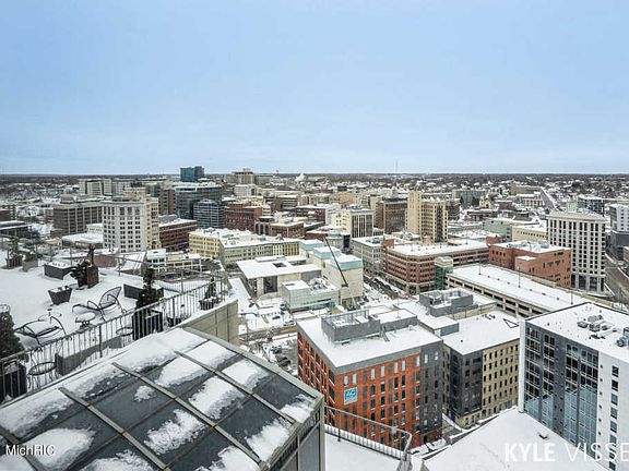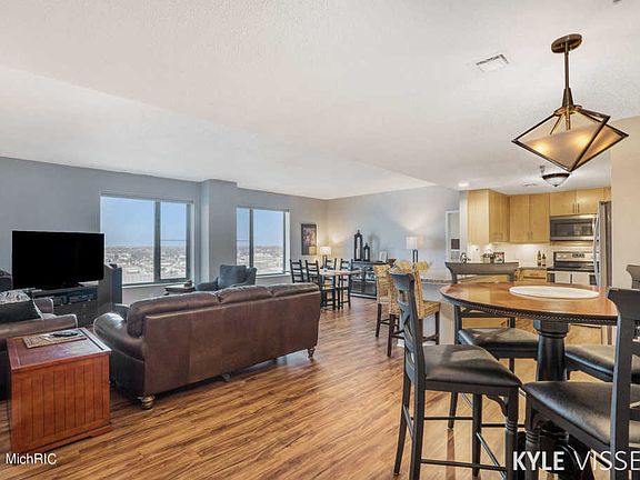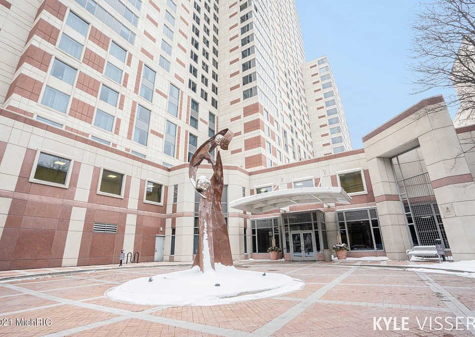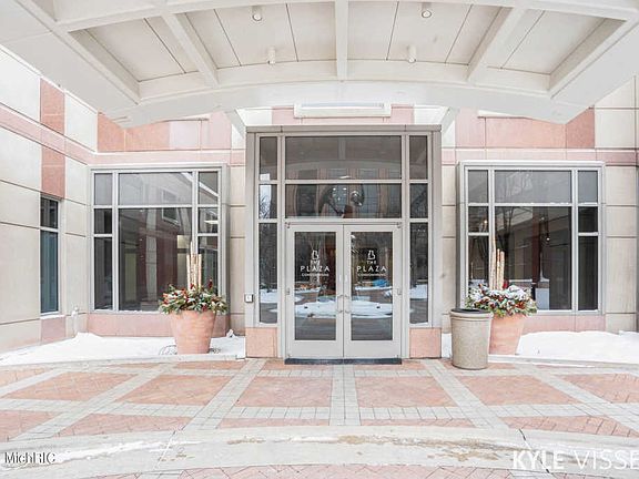 Live above it all and entertain in this light-filled 2 bed 2 bath unit that boasts a comfortable 1,311 sq ft. with enviable Grand Rapids views. This home offers an open floor plan including the living, dining, and kitchen; with private bedrooms on either side. The primary bedroom includes an ensuite bath with jacuzzi tub. Kitchen with beautiful cabinetry, stainless steel appliances, granite countertops, and plenty of storage. This unit comes with two spacious parking spots. Plaza Tower amenitiesinclude 24 hour security, fitness center, indoor pool, rooftop deck and private gathering areas. Plus direct access to the indoor Skywalk that connects you to all things downtown Grand Rapids has to offer.