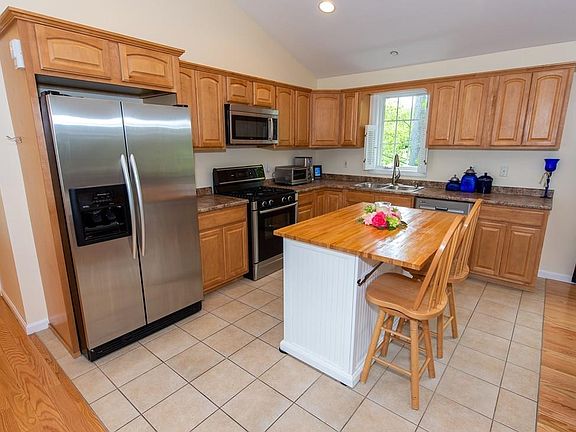 Meticulously maintained 3 bedrooms, 2 bath home. The home offers Open Floor Plan, cathedral ceilings, ceiling fans and beautiful hardwood floors. The Kitchen has beautiful maple cabinetry, a large island, abundant storage, breakfast bar & stainless steel appliances. The spacious dining room has recessed lighting with a slider to the large deck overlooking a manicured, fenced yard with perennial gardens & privacy. The first level hosts the garage, laundry room, slider to the level fenced yard. The balance of the first level of the home remains unfinished waiting for you to make it your own. Energy-efficient gas heat & central air conditioning complete this beautiful home. This high demand cul-de-sac neighborhood is seconds to South Coast Marketplace, services, commuter routes, Henry Lord Community School, & fishing/boating on beautiful Cooks Pond.